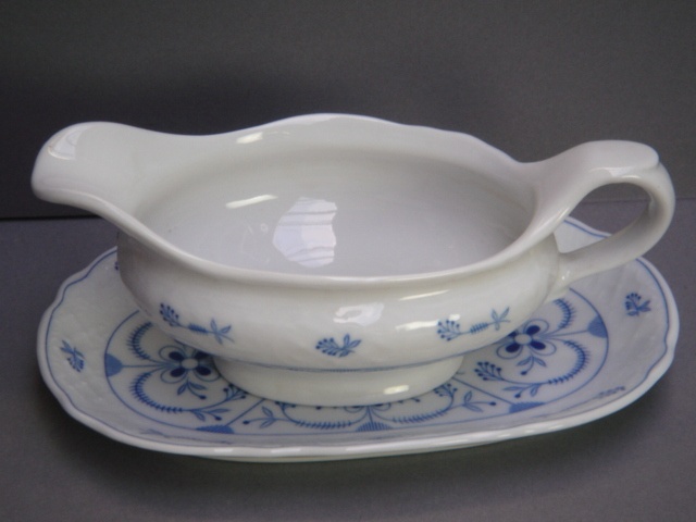 SCHUMANN GOTLAND SAUCE BOAT AND STAND BLUE AND WHITE FLORAL (X4)