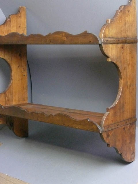 SET OF EARLY SPANISH DARK PINE SHELVES (2) SHAPED SIDES