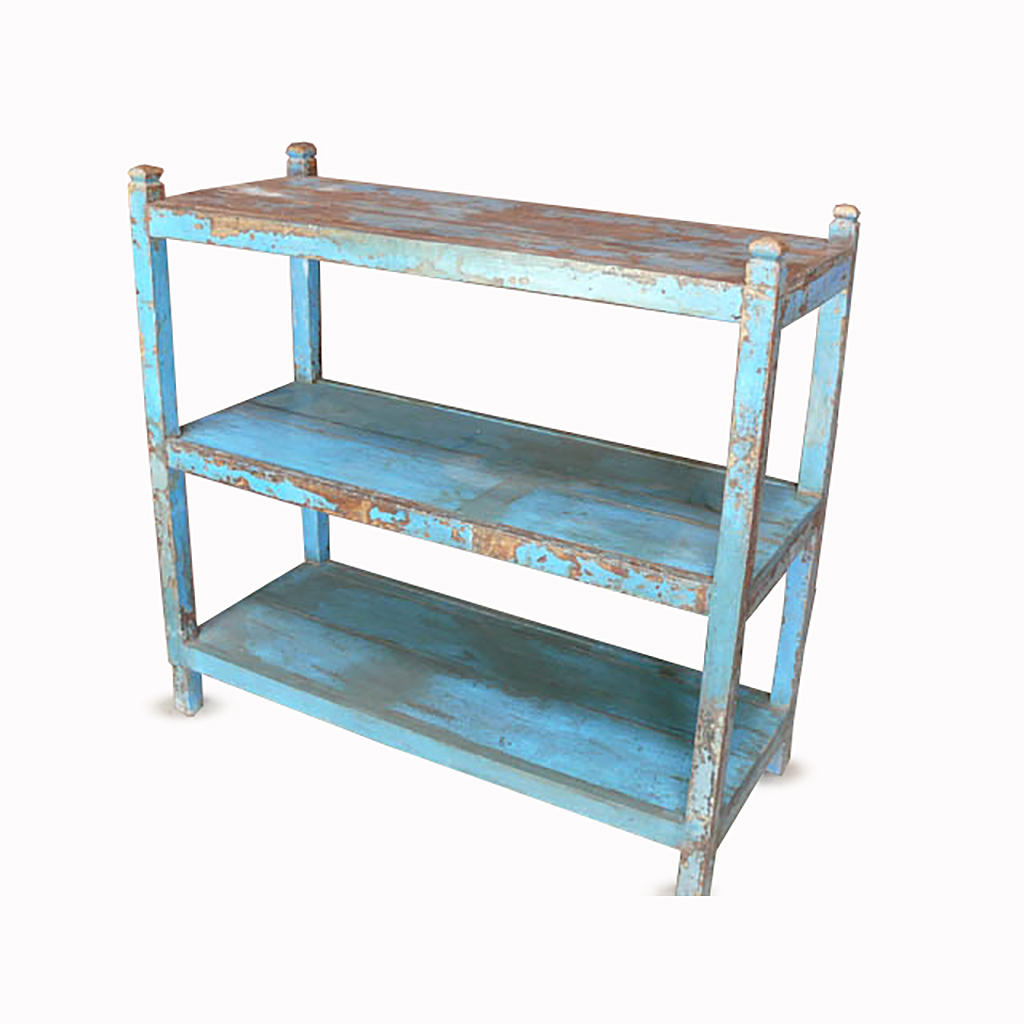SET OF SHELVES THREE TIER DISTRESSED BLUE FINISH 109 CM HIGH 105 CM LONG 48 CM WIDE