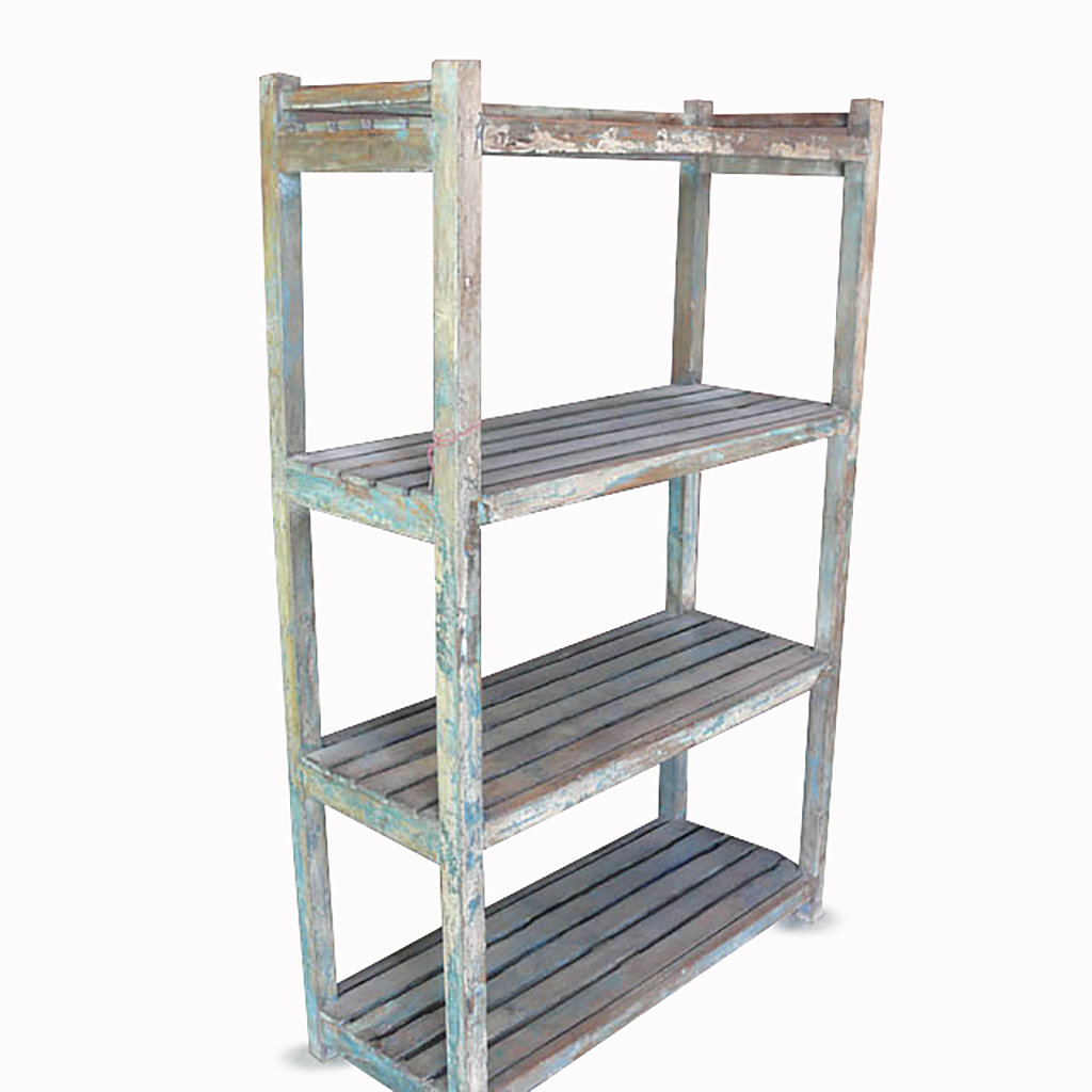 SHELVES FOUR TIER SLATTED WOOD DISTRESSED PAINT FINISH140 CM HIGH 89 CM LONG