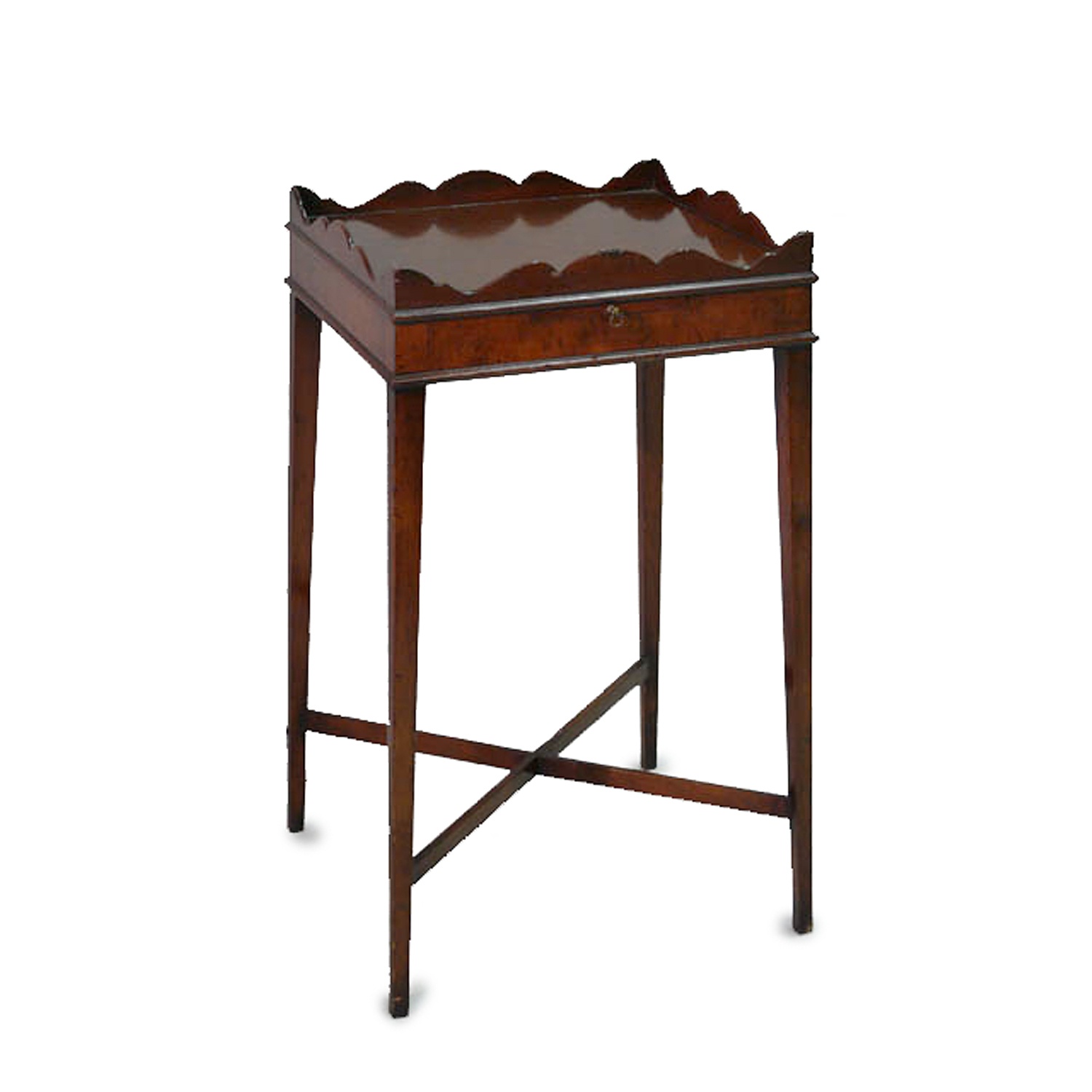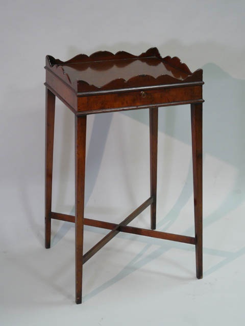 SHERATON BURR MAPLE SQUARE OCCASIONAL TABLE SPLAYED LEG GALLERY EDGE (X2)