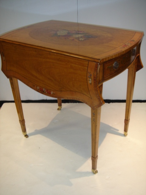 SHERATON DECORATED SATINWOOD PEMBROKE TABLE FLAP SIDES