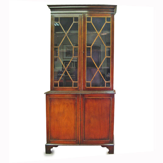 SHERATON STYLE MAHOGANY BOOKCASE THIRTEEN BAR GLAZED DOORS 211 CM HIGH 104 CM WIDE 28 CM DEEP (X2)