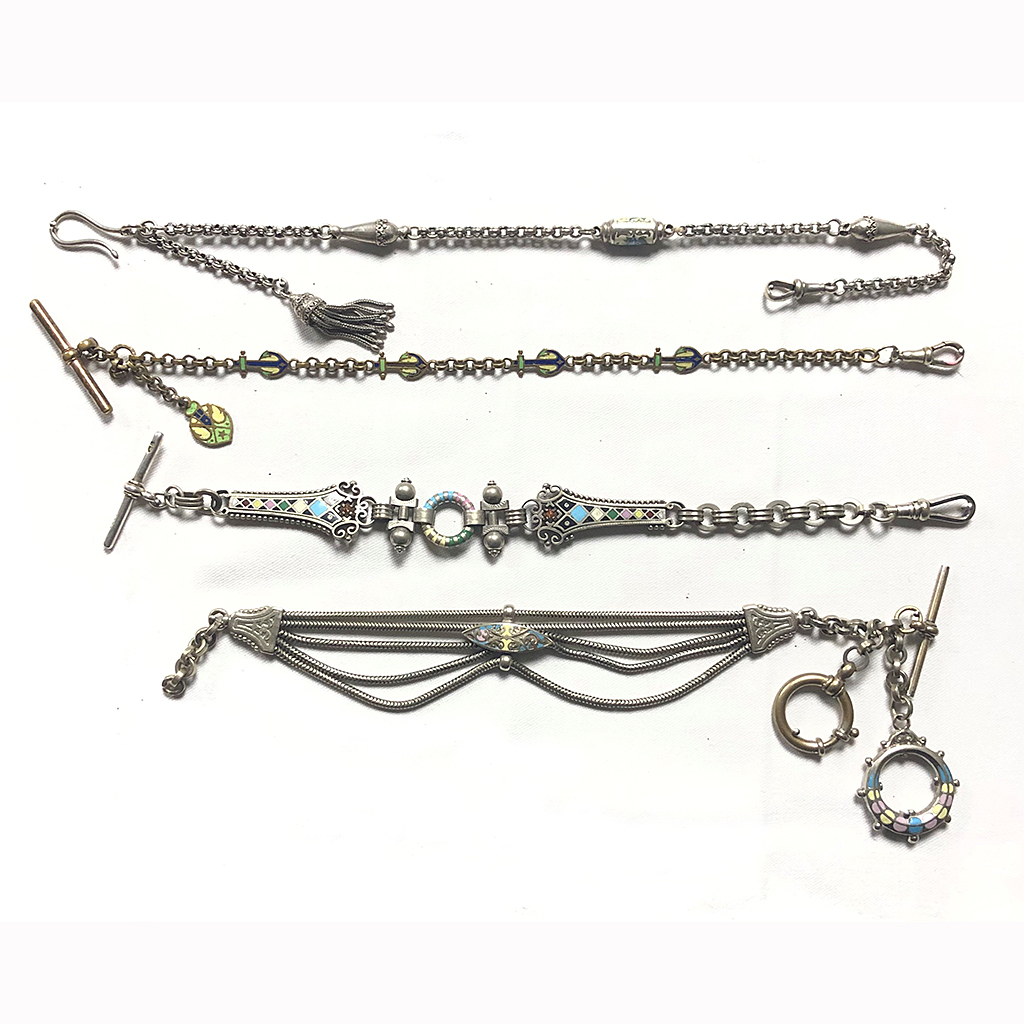 SHORT FANCY SILVER WITH ENAMEL WATCH CHAIN
