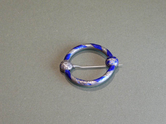 SILVER AND BLUE ENAMEL CELTIC BROOCH