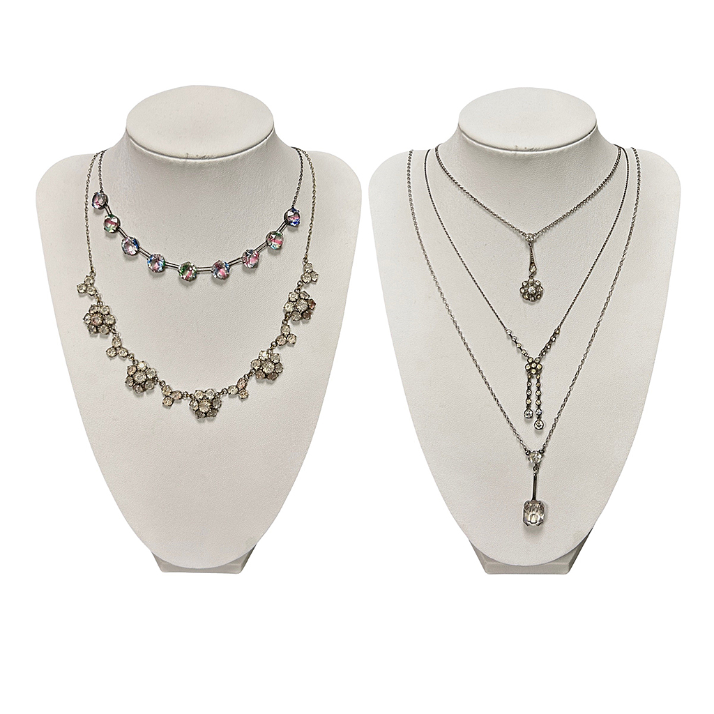 SILVER CHAIN NECKLACE WITH PASTE DROPS / PENDANT