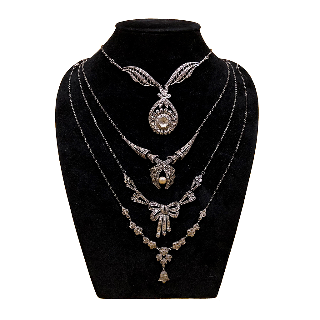 SILVER CHAIN NECKLACE WITH SILVER AND MARCASITE PENDANT
