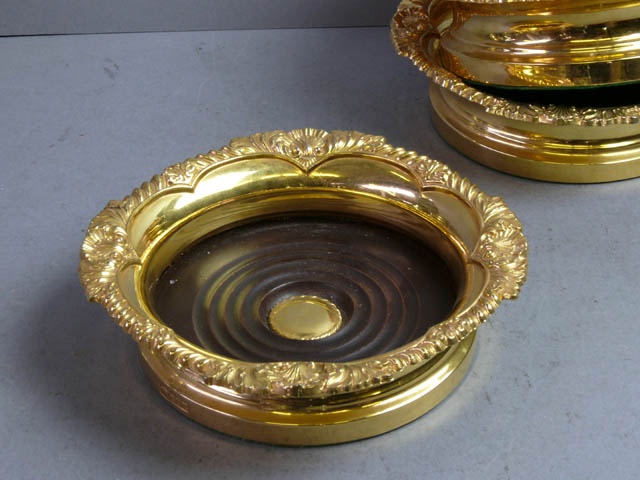 SILVER GILT WINE COASTER WITH TURNED MAHOGANY BASE (X4)