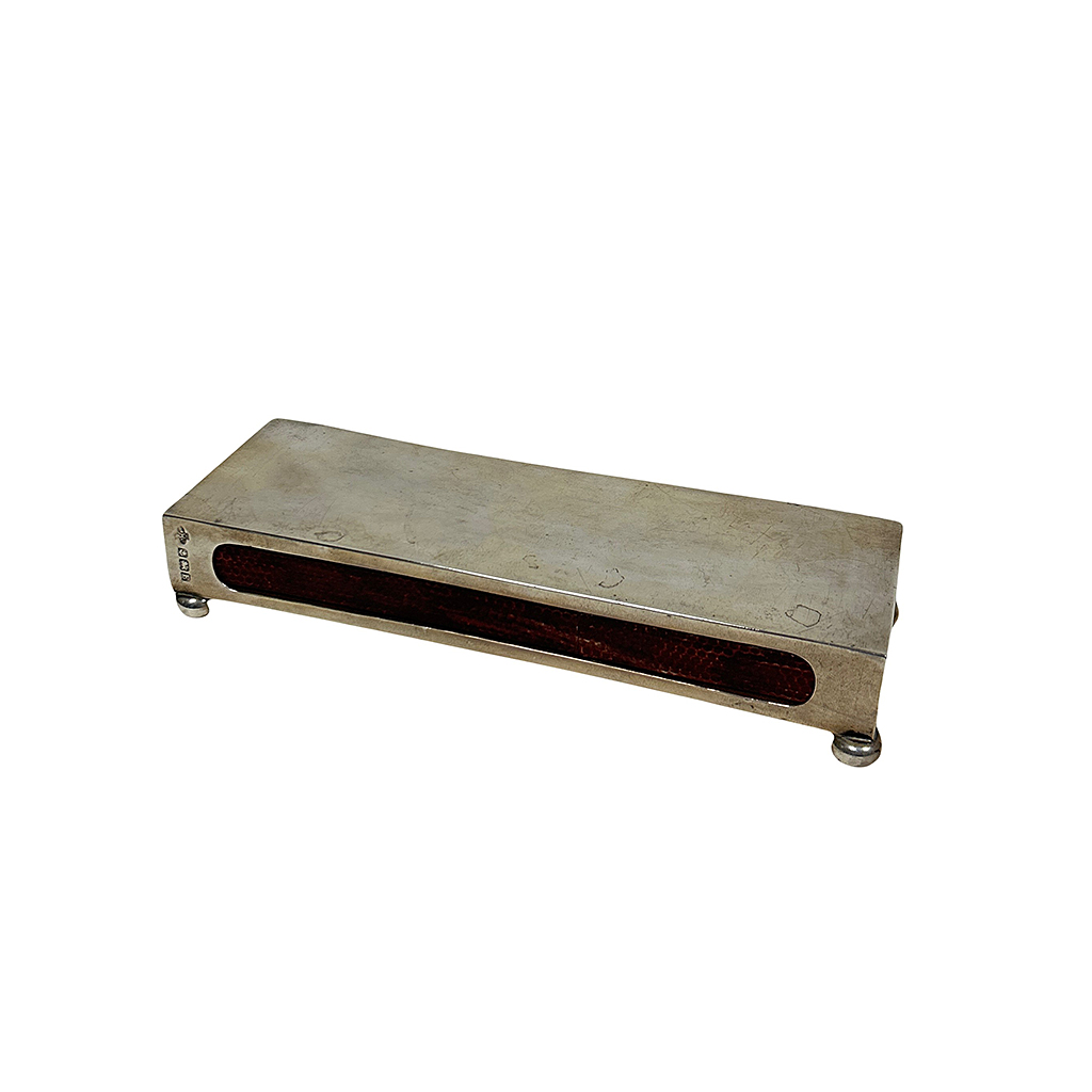 SILVER LONG MATCH BOX HOLDER ON FOUR BALL FEET 16.5 CM LONG / 5.5 CM DEEP
