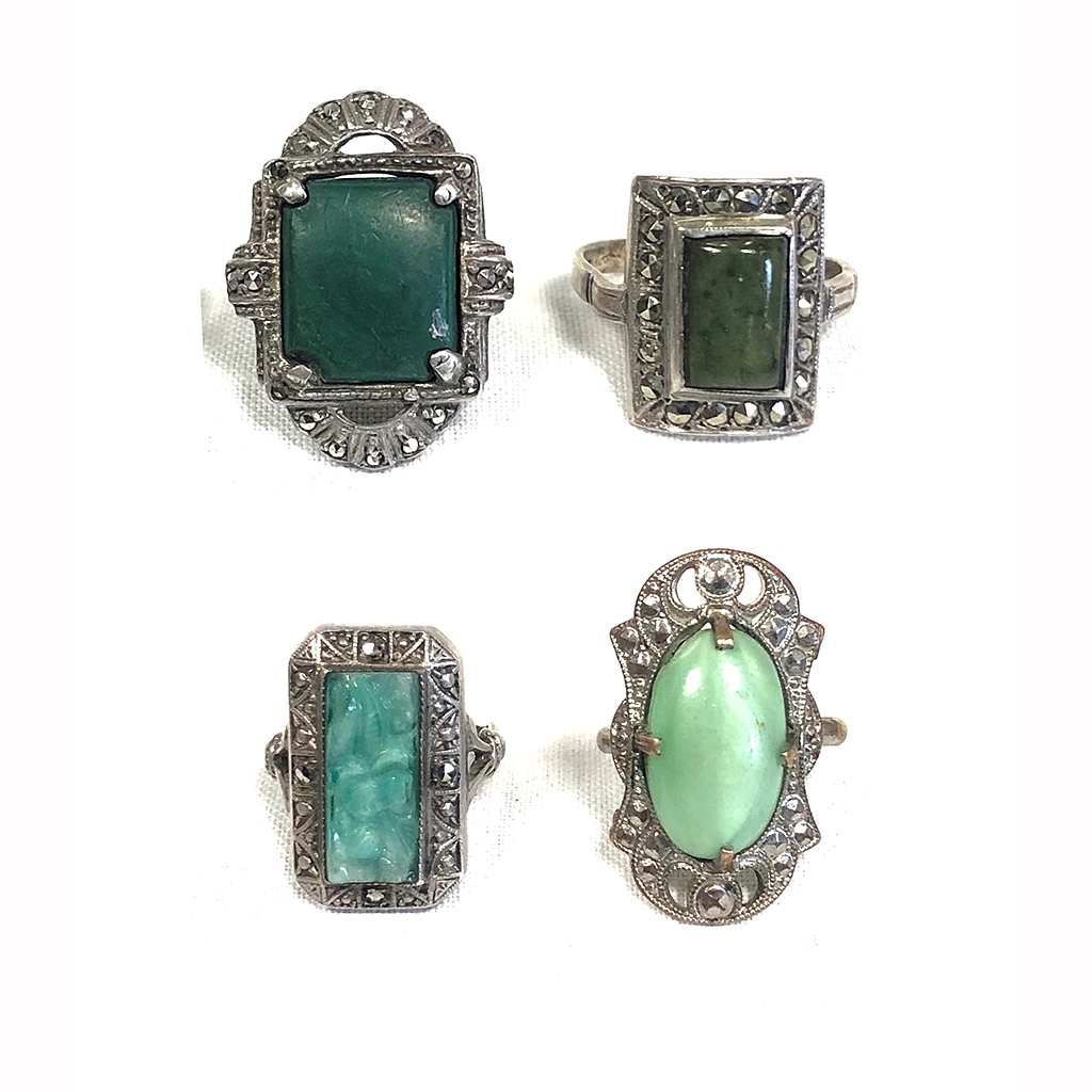 SILVER MARCASITE AND JADE LADIES RING