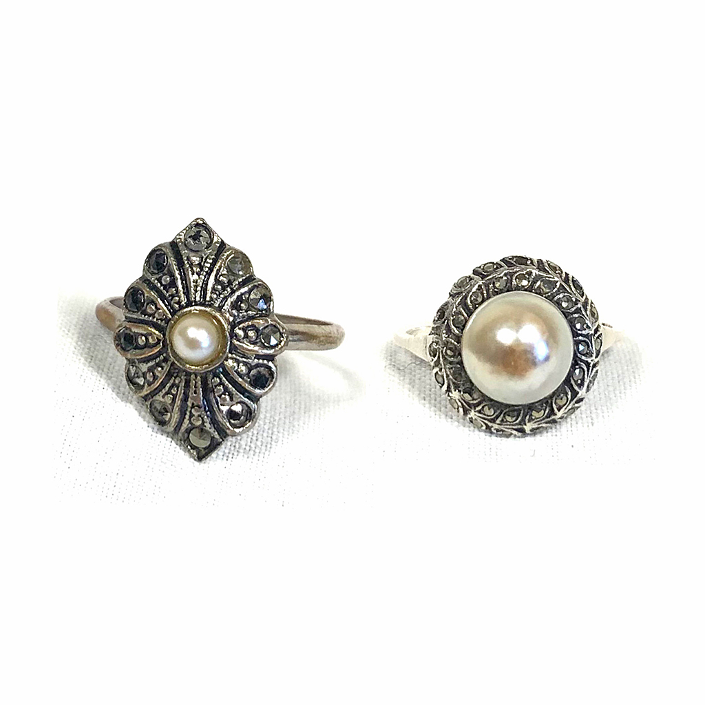 SILVER MARCASITE AND PEARL LADIES RING