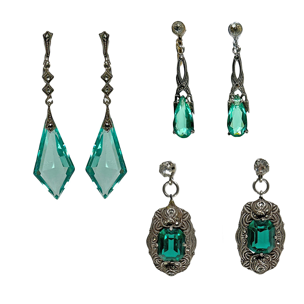 SILVER MARCASITE GREEN PASTE PERIOD EARRINGS
