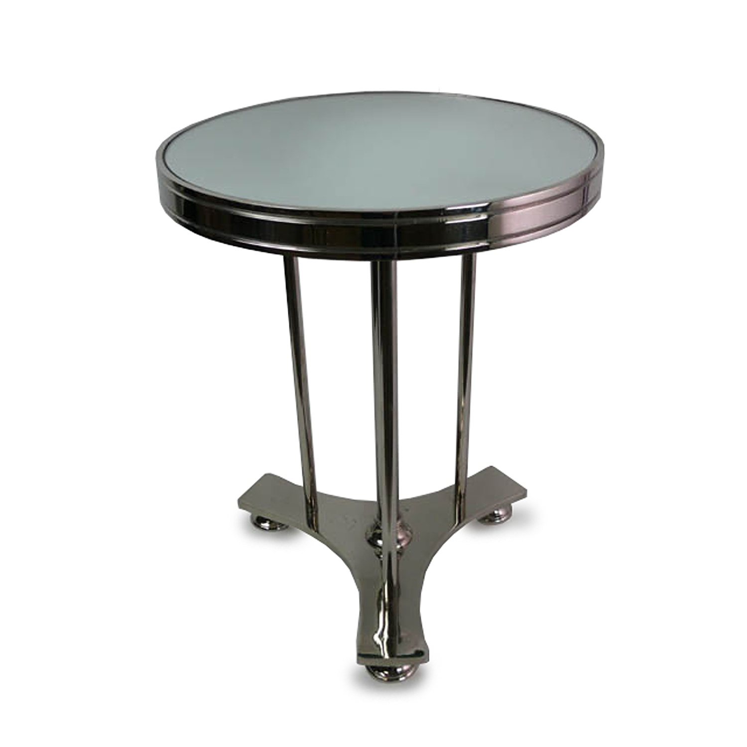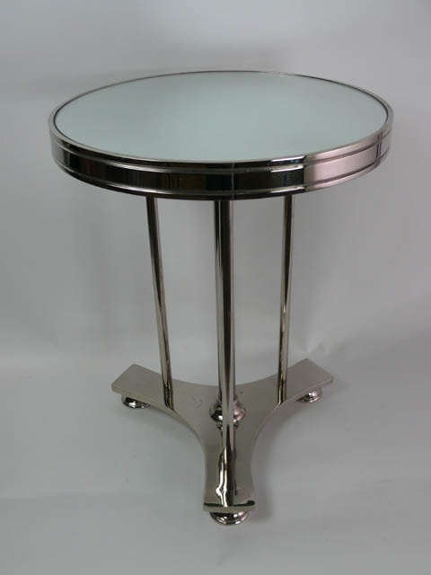 SILVER OCCASIONAL TABLE CIRCULAR WITH MIRROR GLASS TOP 51 CM HIGH 40 CM DIAM. (X10)