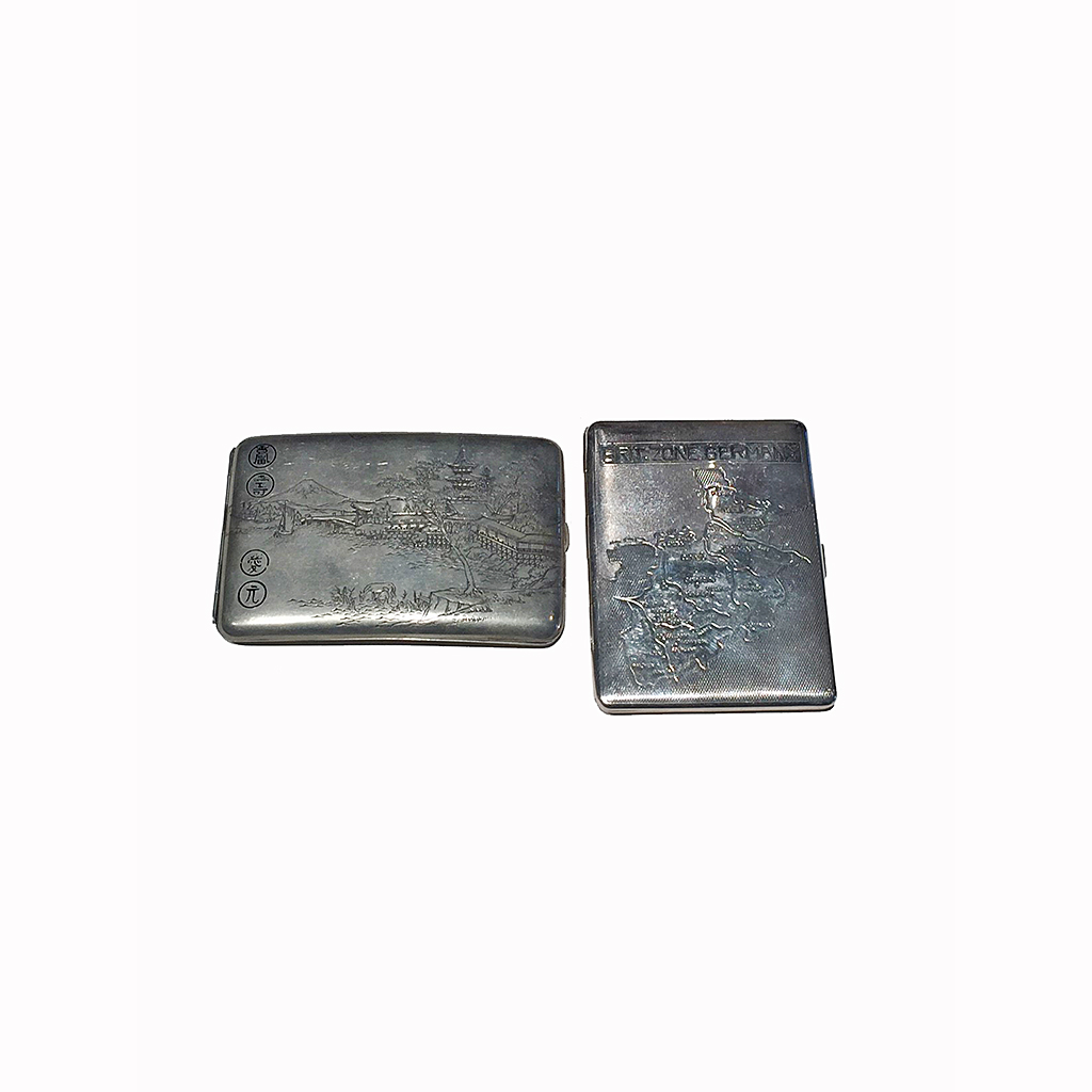 SILVER PLATED SOUVENIR CIGARETTE CASE DECORATED WITH SCENES OF FOREIGN COUNTRIES