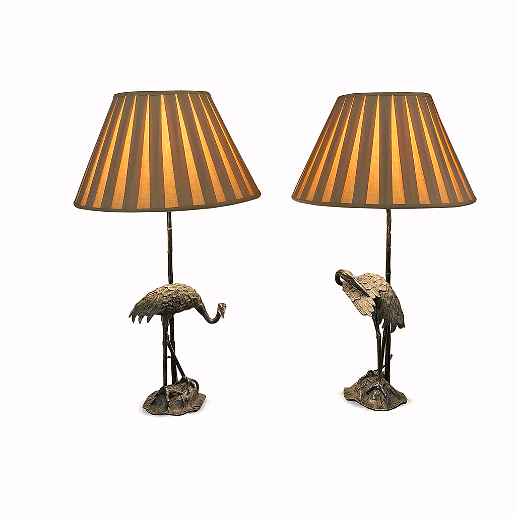 SILVERED TABLE LAMP WITH STORK / BIRD BASE FRENCH CIRCA 1950 49 CM HIGH (SMALL SHADE LIGS10084 NOT INC.) (X2)