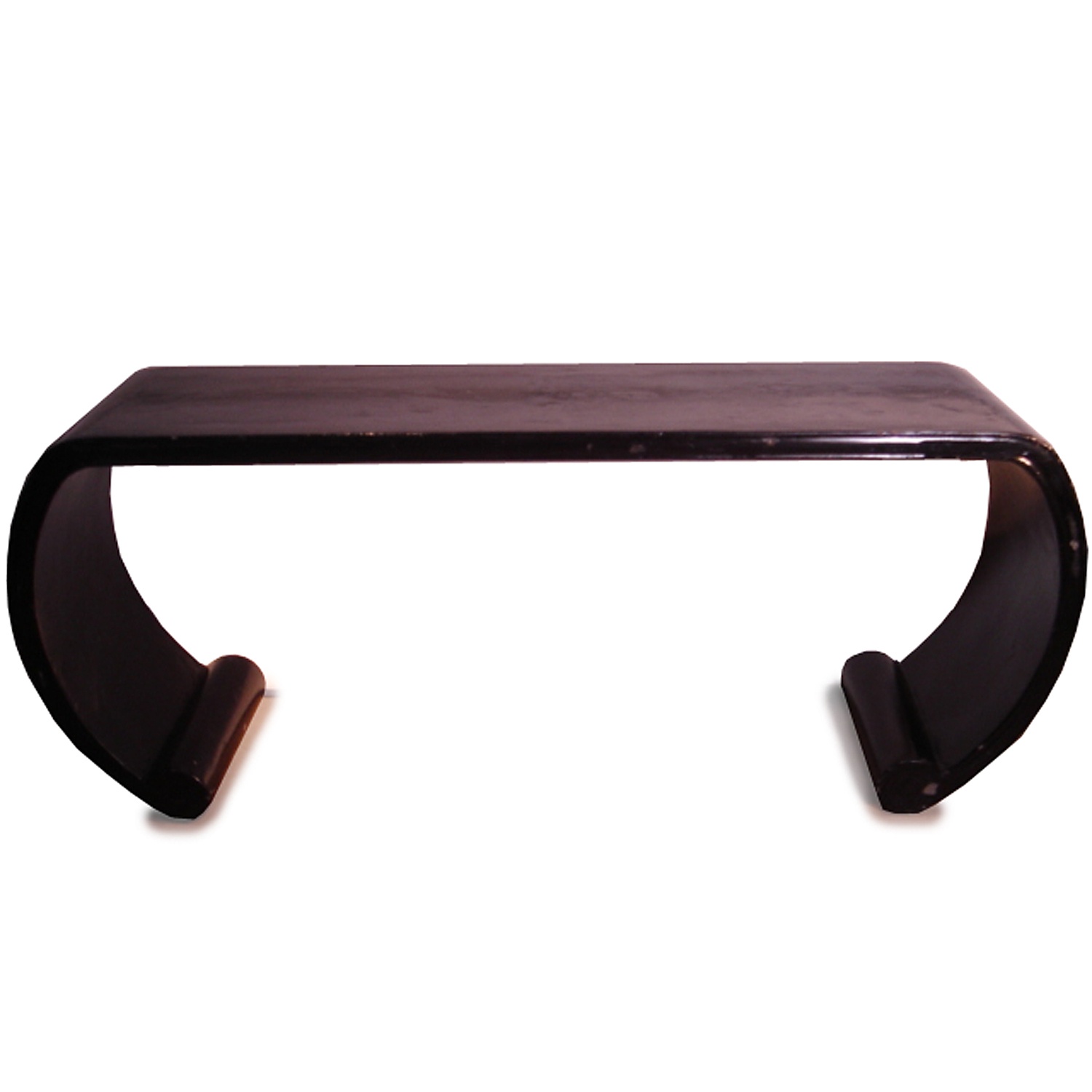 SIMPLE CHINESE BLACK LACQUER LOW MUSIC TABLE ONE PIECE WITH BOW ENDS 61 CM HIGH 146 CM LONG 32 CM WIDE