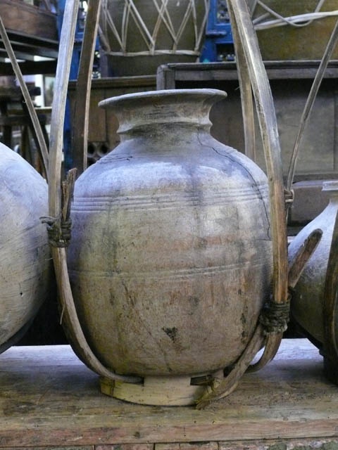 SIMPLE HANGING VASE TERRACOTTA AND BAMBOO (X7)