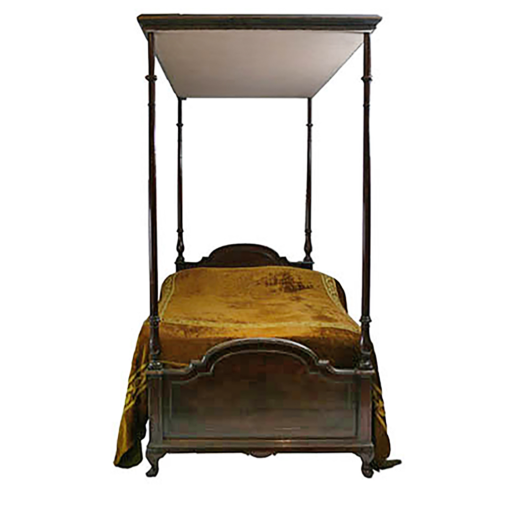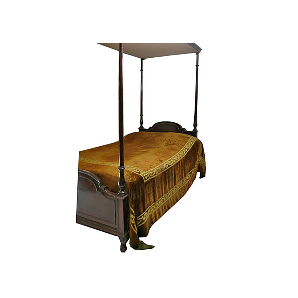 SIMPLE MAHOGANY FOUR POSTER SINGLE BED WITH MATTRESS 3'6" WIDE 219 CM HIGH 109 CM WIDE 215 CM LONG