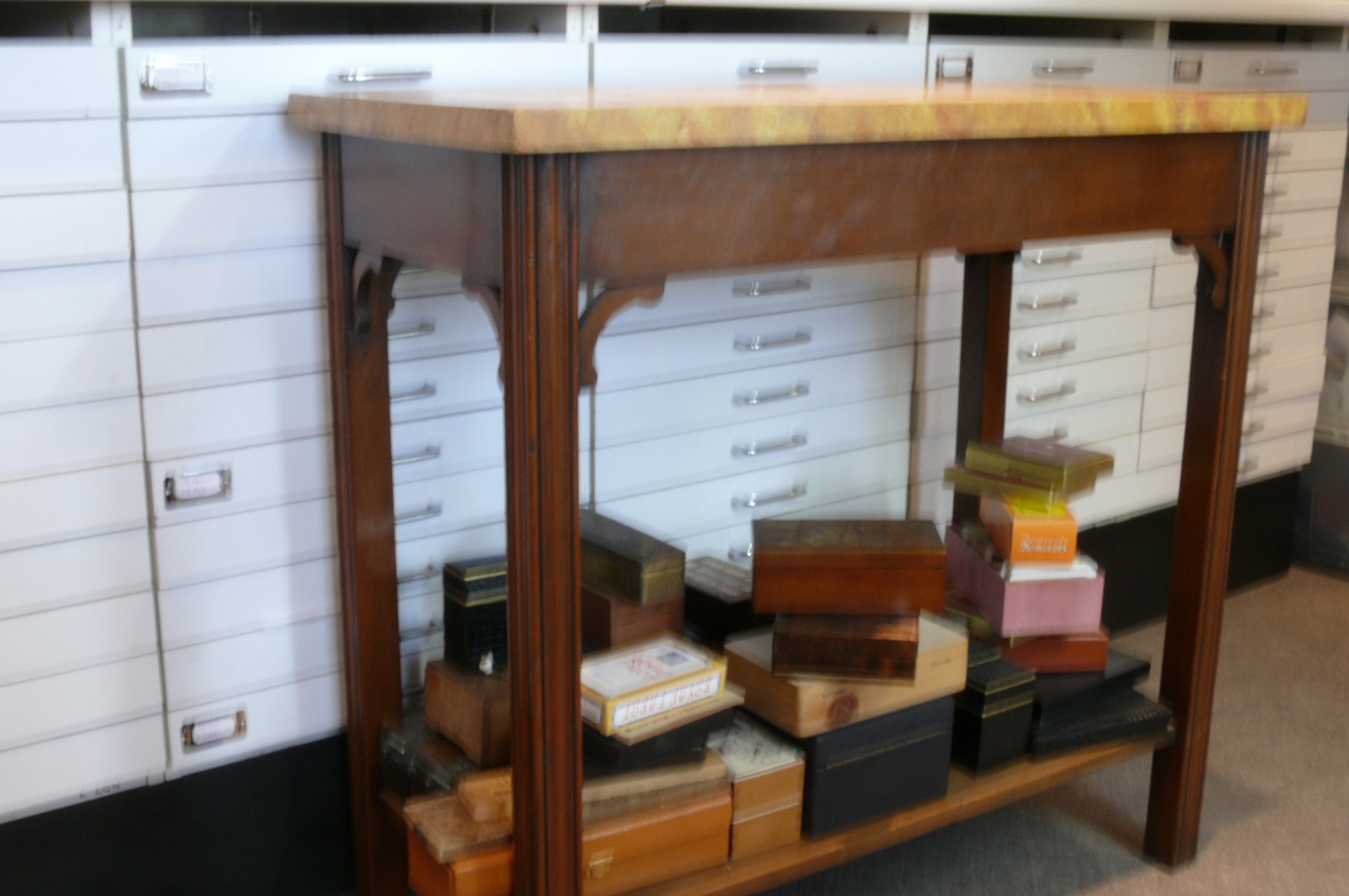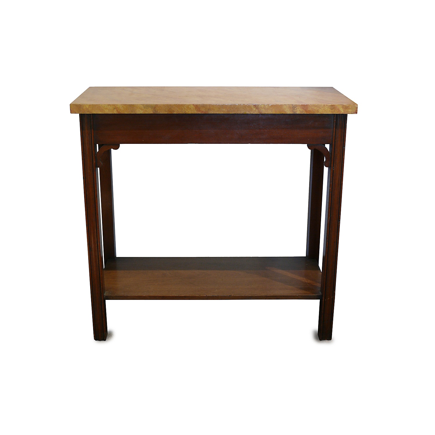 SIMPLE MAHOGANY TWO TIER SIDE TABLE FAUX AMBER MARBLE TOP 3' LONG (X2)