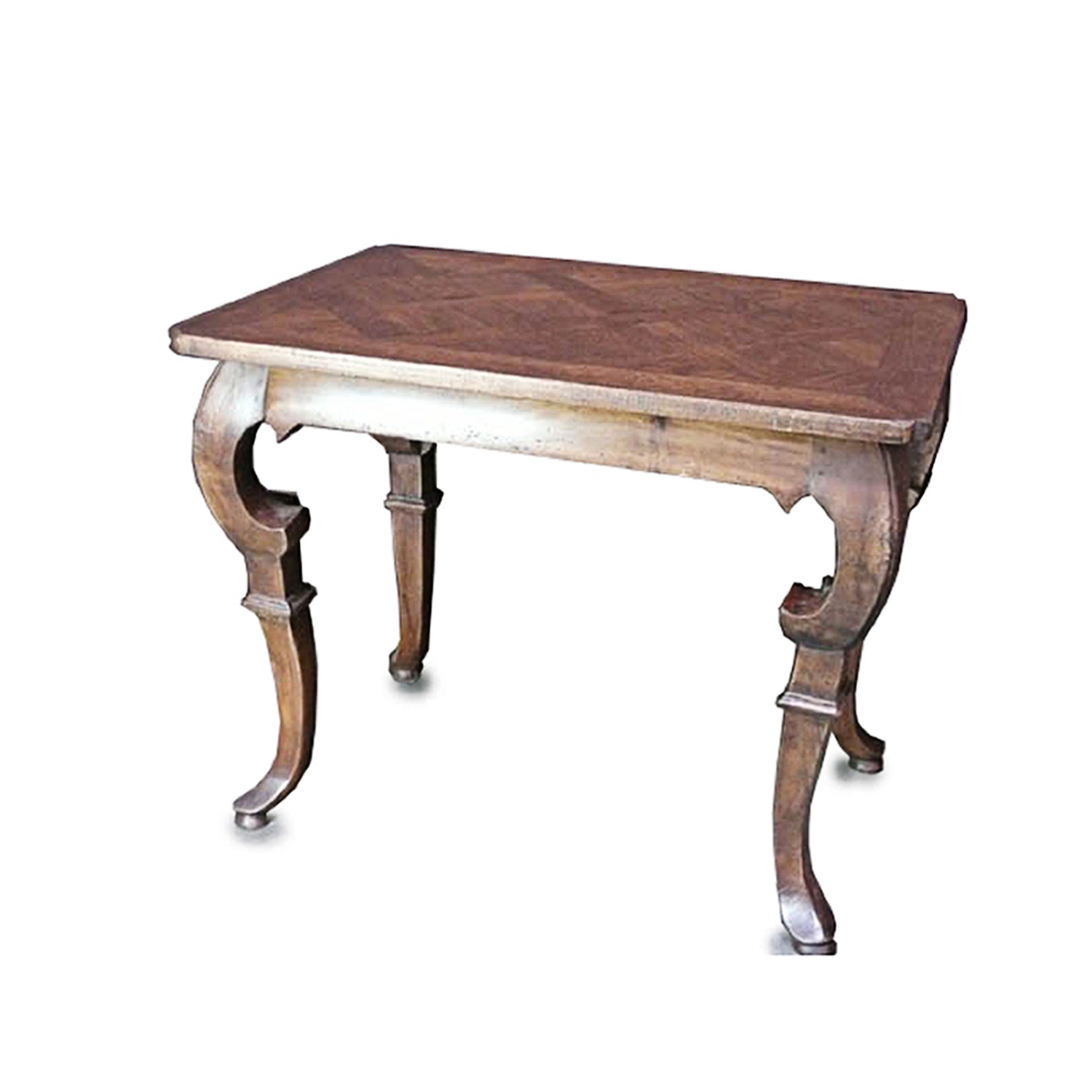 SIMPLE QUEEN ANN STYLE TABLE WITH PARQUET TOP 88 CM LONG 62 CM WIDE 71 CM HIGH (X2)