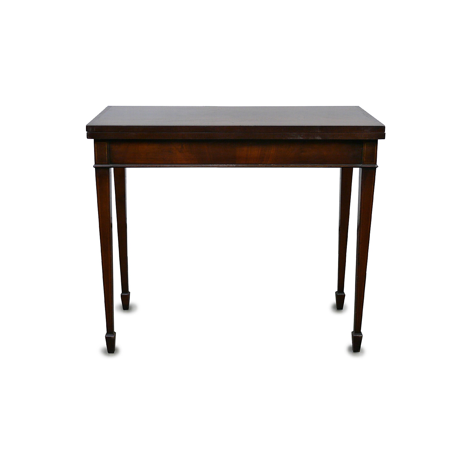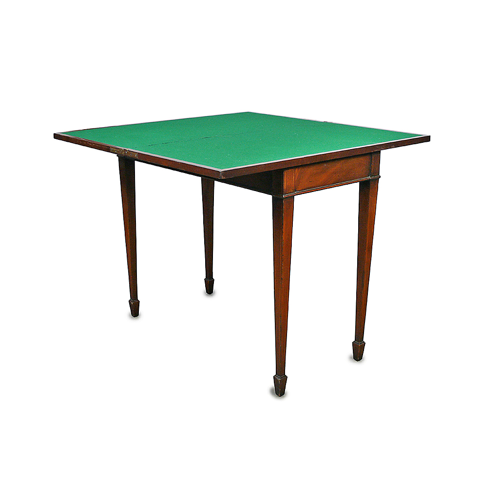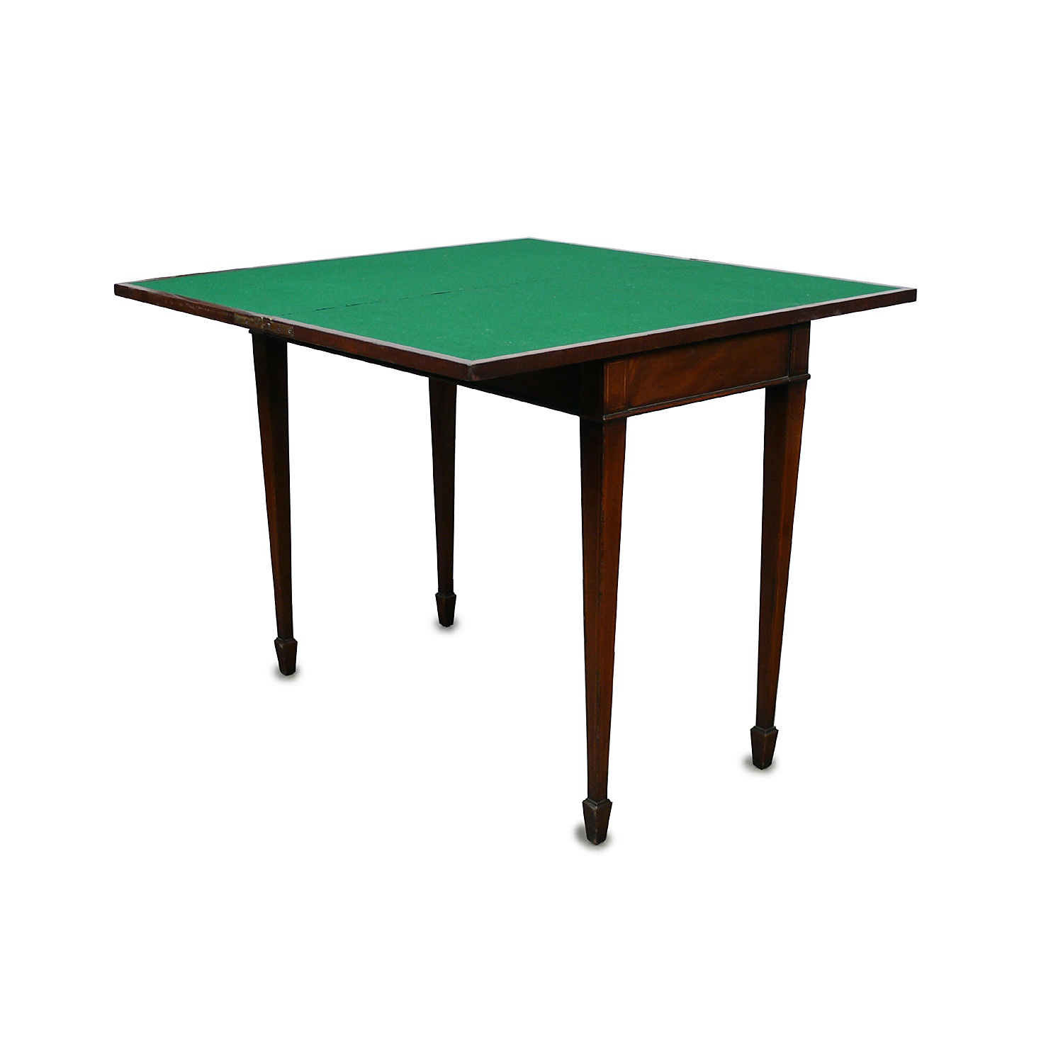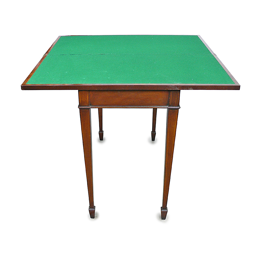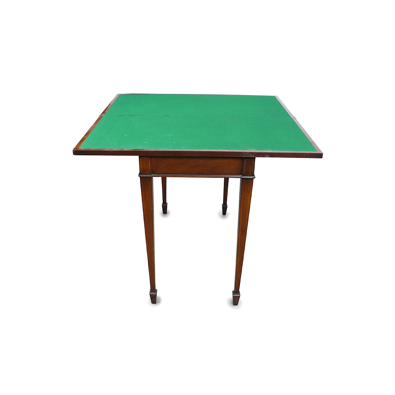 SIMPLE SHERATON MAHOGANY FOLDING GAMES / CARD TABLE GREEN BAIZE TOP 91 CM WIDE 46 CM DEEP 78 CM HIGH (X2)
