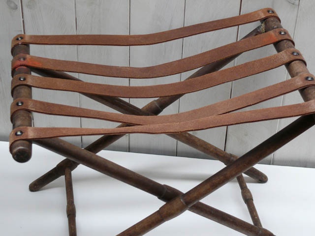 SLATTED TAN LEATHER FOLDING FISHING STOOL (X2)