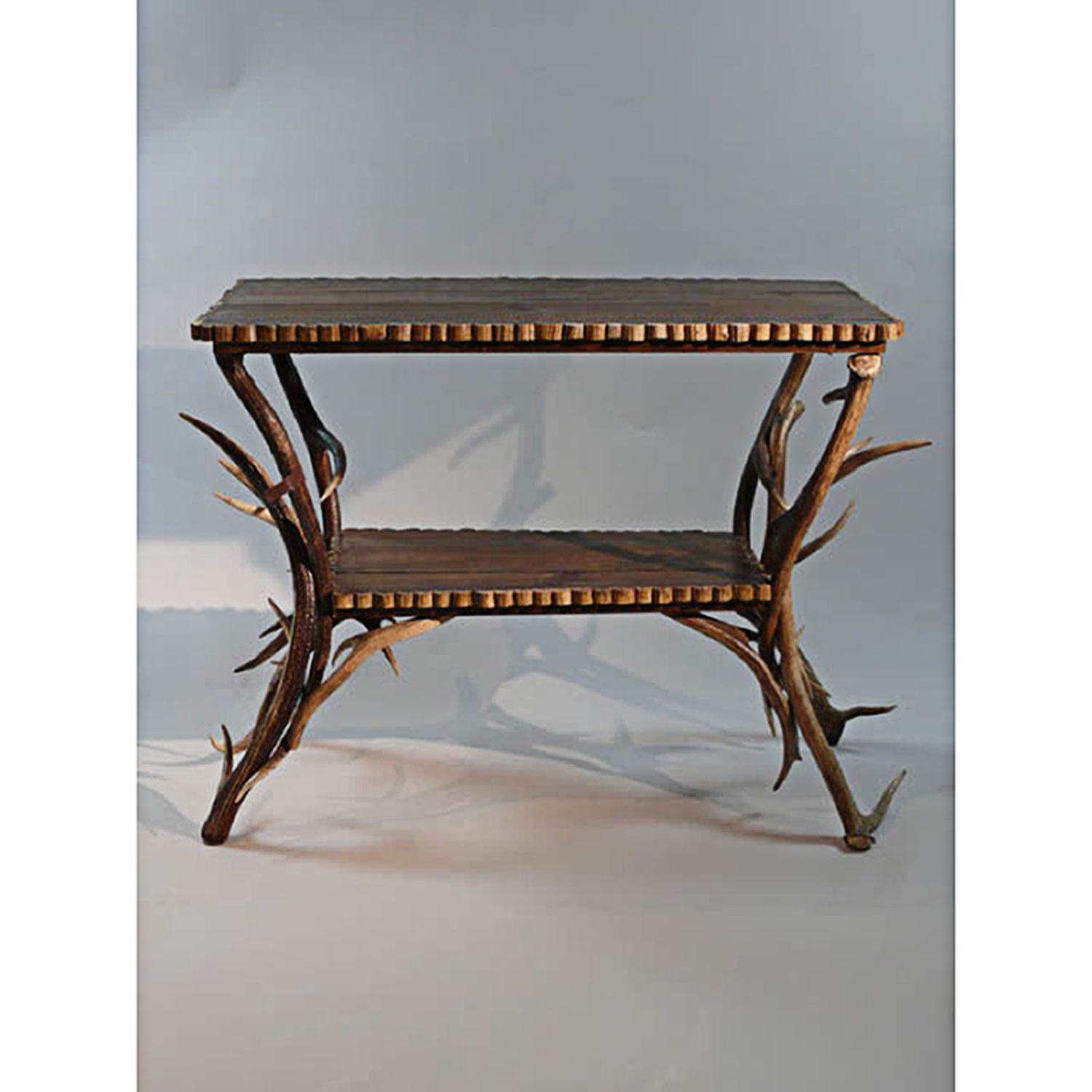 SMALL ANTLER MOUNTED RECTANGULAR TABLE TWO TIER 94 CM LONG 49 CM WIDE 75 CM HIGH (X2)