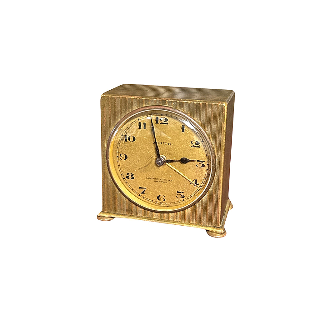 SMALL ART DECO BRASS ALARM CLOCK WITH STRIPE ENGINE DECORTION ''ZENITH'' 5 CM X 5CM