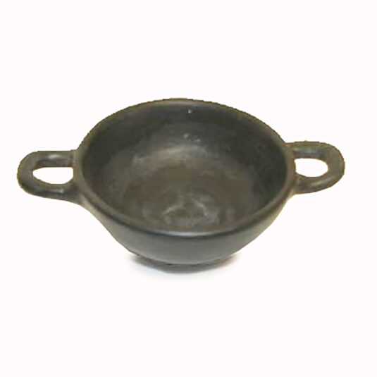 SMALL BLACK CERAMIC GRECIAN TWIN HANDLED CUP / BOWL 4" DIAM (X70)