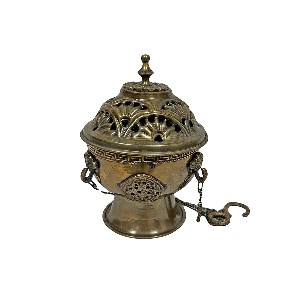 SMALL BRASS THURIBAL INCENSE BURNER WITH SHORT CHAINS 14 CM HIGH 11 CM DIAM