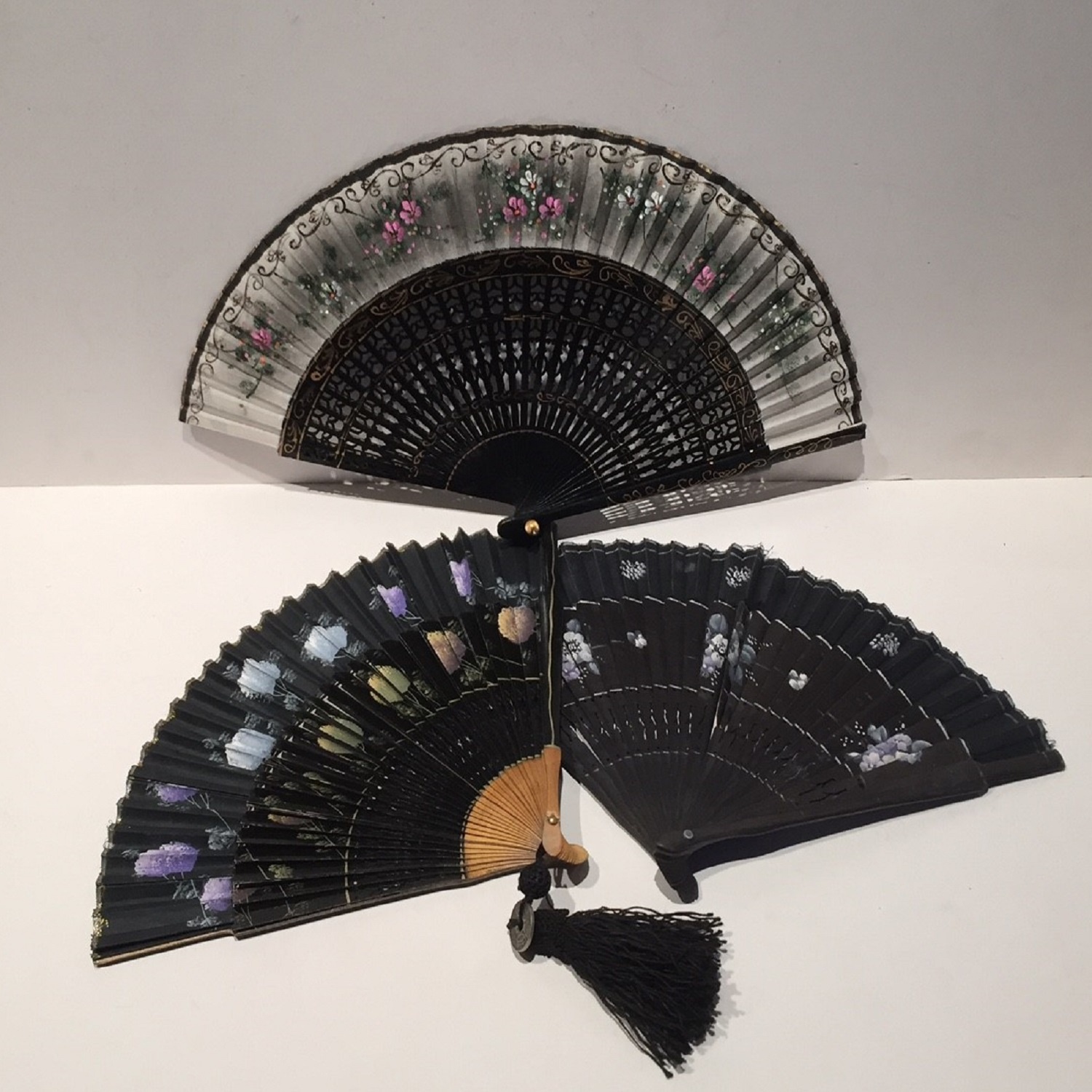 SMALL BLACK PAINTED WOODEN FAN AS LISTED 23 CM