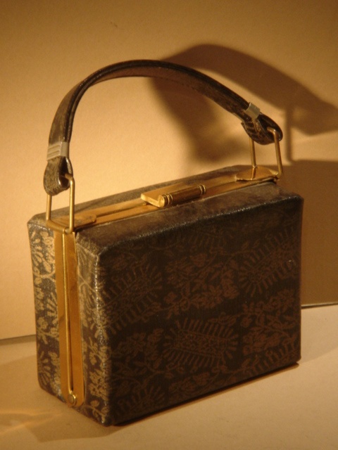 SMALL BLACK PATTERNED WAXED CANVAS HANDBAG 14 CM WIDE