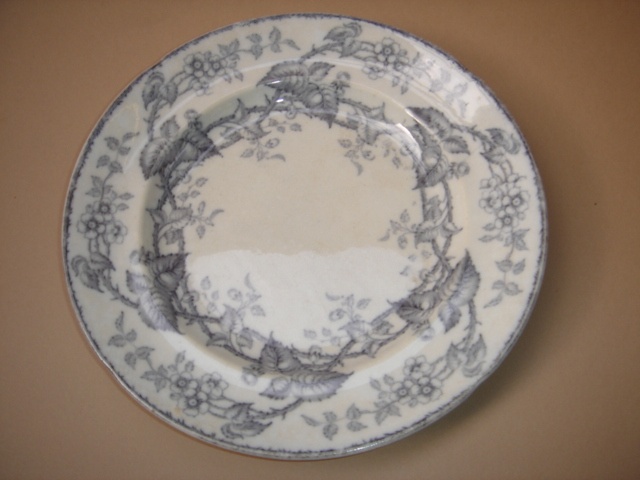 SMALL BLACKBERRY DESSERT SIDE PLATE GREY AND WHITE CHINA