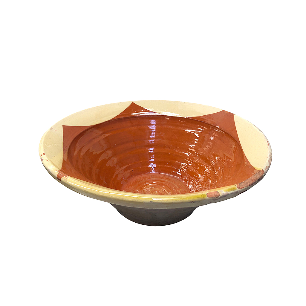 MEDIUM FRENCH BOWL WITH BROWN AND CREAM GLAZED INNER 40 CM DIAM