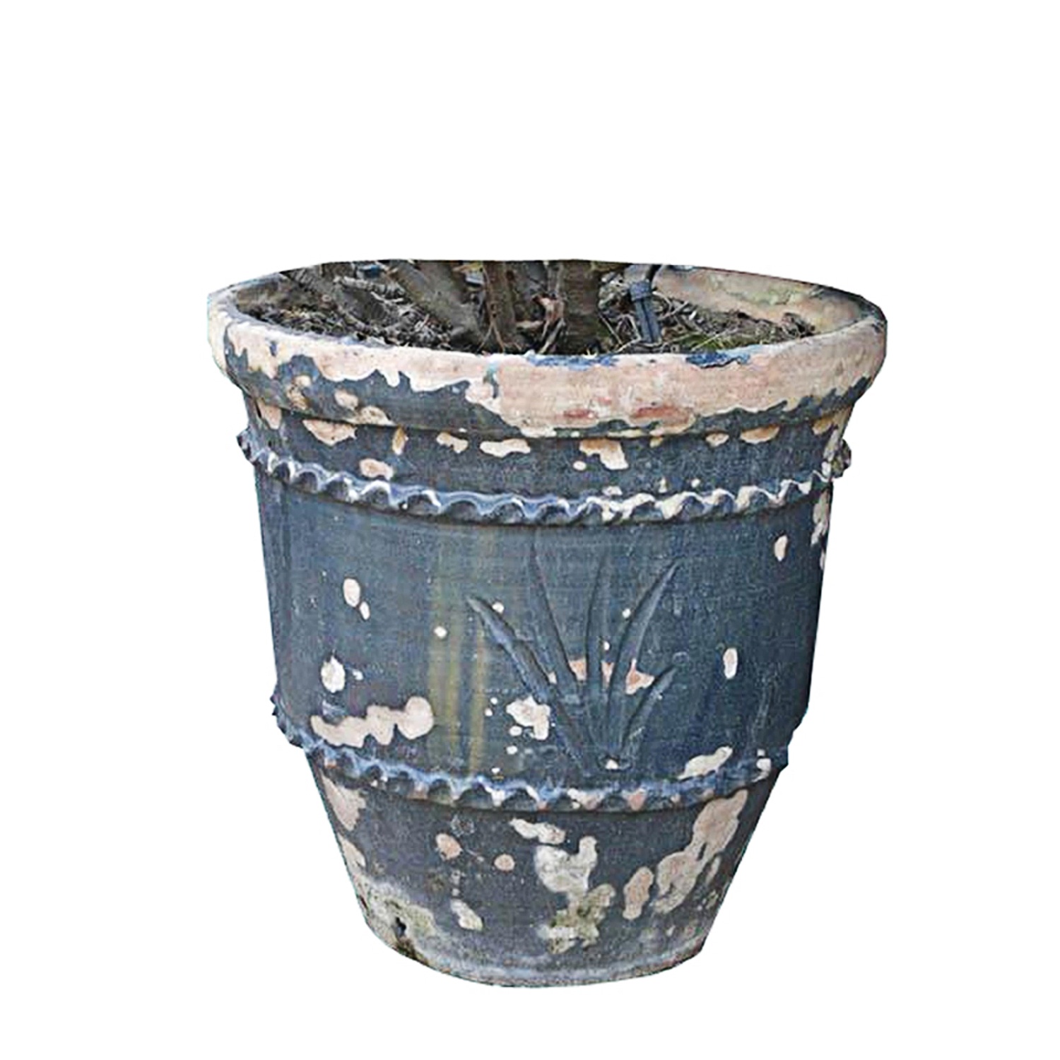 SMALL BLUE GLAZED GARDEN PLANTER / URN