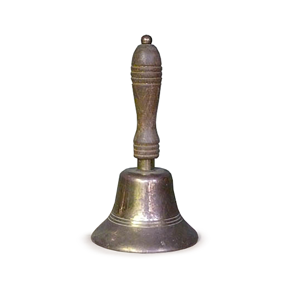 SMALL BRASS AND MAHOGANY SCHOOL BELL 23 CM INC. HANDLE