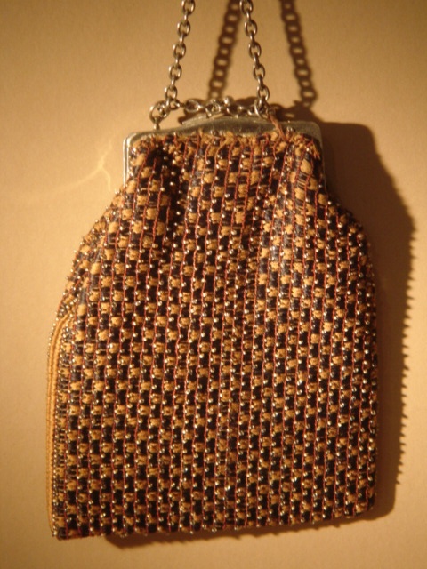 SMALL BROWN AND BLACK CHECK PATTERN HANDBAG 14 CM WIDE