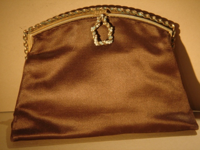 SMALL BROWN SATIN CLUTCH HANDBAG 20 CM WIDE