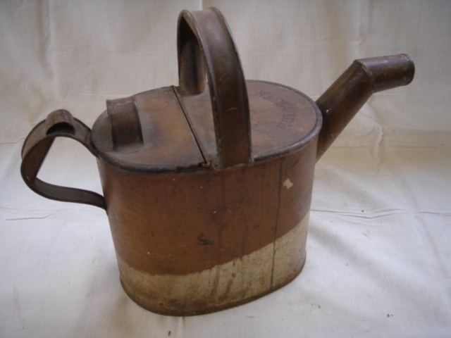 SMALL BROWN TIN WATER CARRIER / KETTLE