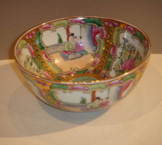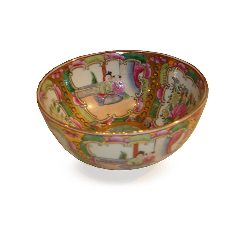 SMALL CHINESE FAMILLE ROSE CHINA SLOP BOWL 12 CM DIAM (X2)