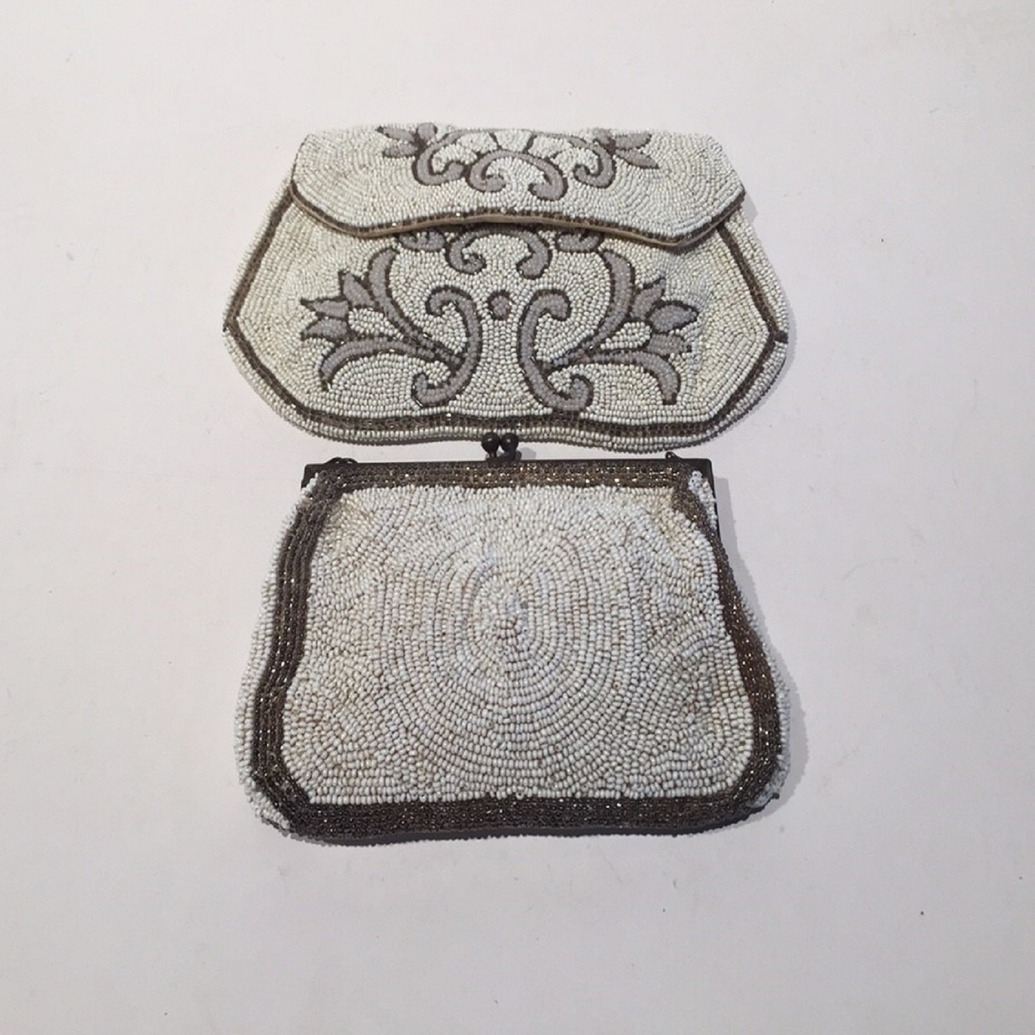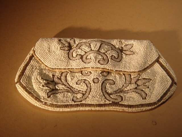 SMALL CREAM AND GREY SEQUINED CLUTCH HANDBAG AS LISTED