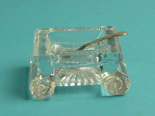 SMALL CUT GLASS CONDIMENT / SALT DISH RECTANGULAR WITH SCROLL BASE (X6)
