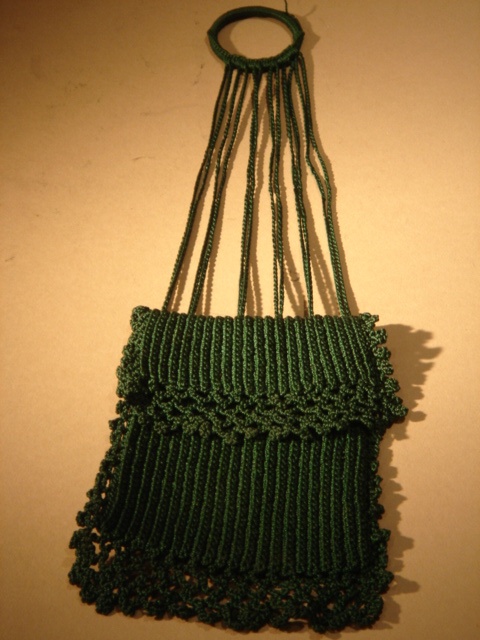SMALL DARK GREEN CROCHET HANDBAG 9 CM WIDE