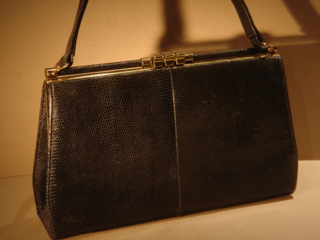SMALL DARK GREY SNAKESKIN MAPPIN AND WEBB HANDBAG 28 CM WIDE