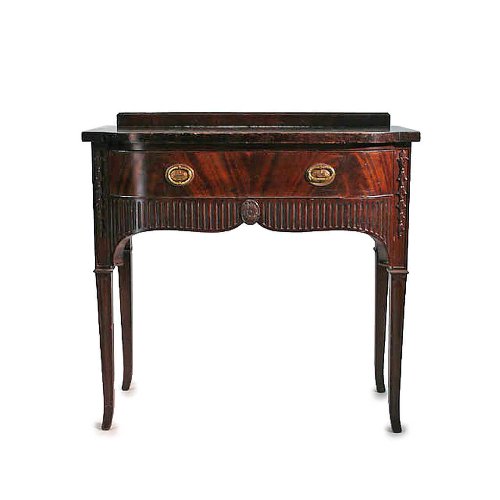 SMALL DARK MAHOGANY HEPPLEWHITE SIDEBOARD 3' WIDE WITH SINGLE DRAWER FLUTTED FRONT