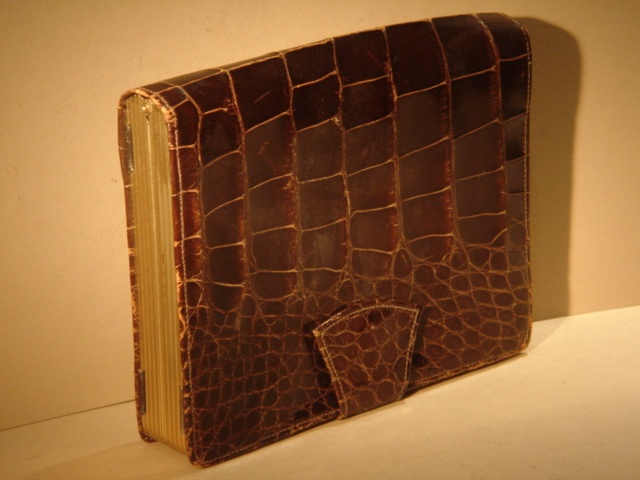 SMALL DARK TAN CROCODILE SKIN CLUTCH HANDBAG 20 CM WIDE
