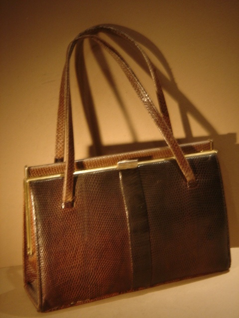 SMALL DARK TAN SNAKESKIN HANDBAG BY MAPPIN AND WEBB 25 CM WIDE
