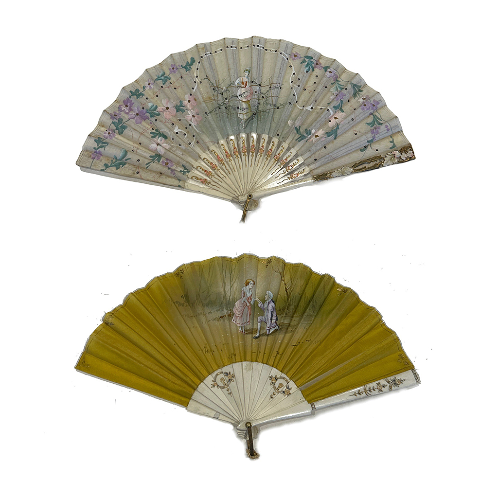 SMALL DECORATIVE BONE STICK GAUZE FAN WITH PAINTED DECORATION 17-19 CM LONG