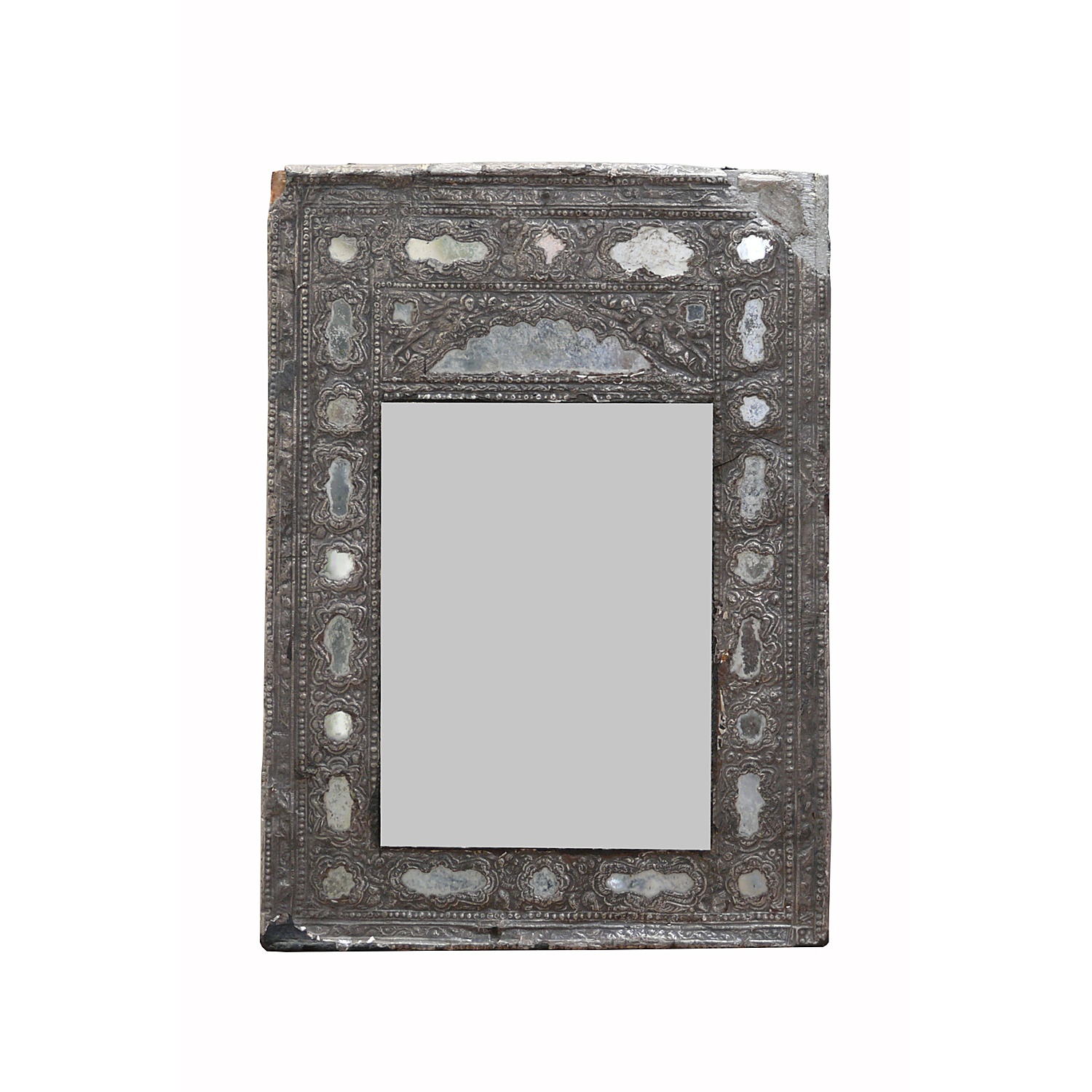 SMALL EMBOSSED SILVER MIRROR INDIAN 29 CM HIGH 21 CM WIDE