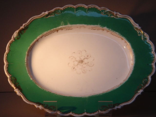 SMALL EMERALD GREEN AND WHITE CHINA OVAL SERVING PLATE